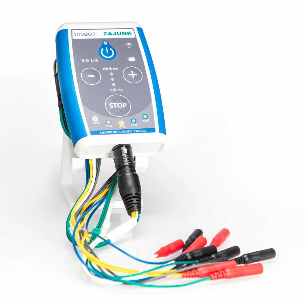 STIM2GO es un avanzado sistema de neuroestimulación portátil que cuenta con hasta 5 canales independientes. A diferencia de los electroestimuladores convencionales, este dispositivo ha sido diseñado específicamente para la neurorrehabilitación intensiva, permitiendo su uso tanto en adultos como en niños con alteraciones neurológicas.